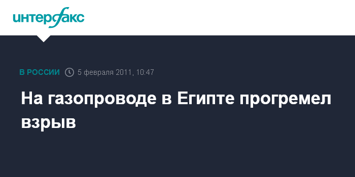 Дубай. 5 февраля. INTERFAX.RU - Звук сильного взрыва был слышан в субботу близ египетского города Эль-Ариш на Синайском полуострове, передает работающий из Дубая межарабский телеканал "Аль-Джазира". Телеканал отмечает, что вслед за взрывом начался пожар. По предварительным данным, взрыв прогремел на газопроводе, соединяющем Египет с Израилем.