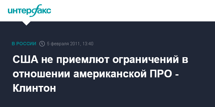 США не приемлют ограничений в отношении американской ПРО - Клинтон