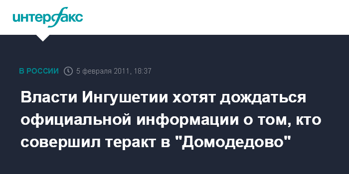 Власти Ингушетии хотят дождаться официальной информации о том, кто совершил теракт в "Домодедово"