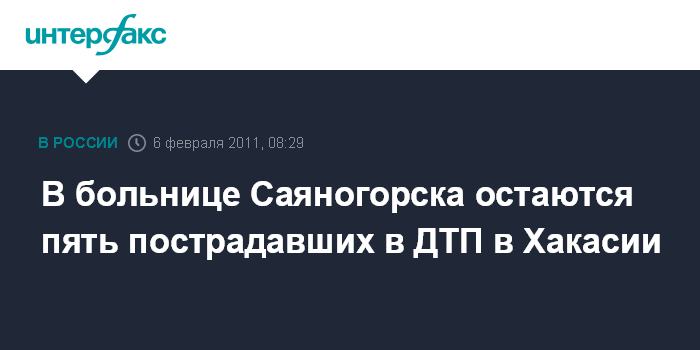 Абакан. 6 февраля. ИНТЕРФАКС-СИБИРЬ - Пятеро пострадавших в результате автомобильной аварии на трассе Абакан-Саяногорск в Хакасии доставлены в Саяногорскую городскую больницу, сообщает в воскресенье ГУ МЧС по республике.