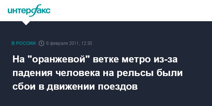 Москва. 6 февраля. INTERFAX.RU - На станции "Профсоюзная" Калужско-Рижской линии столичного метро на рельсы упал человек, сообщил "Интерфаксу" источник в правоохранительных органах. "На станции метро "Профсоюзная" в воскресенье утром произошло падение человека на рельсы. Для его извлечения временно снималось напряжение на контактном рельсе, также менялся график движения поездов", - сказал собеседник агентства. Он сообщил также, что в настоящее время график движения поездов восстанавливается.