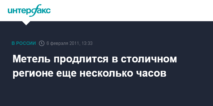 Москва. 6 февраля. INTERFAX.RU - Атмосферный циклон, принесший в Москву и Подмосковье мокрый снег и метель, покидает регион, сообщили "Интерфаксу" в Гидрометеобюро Москвы и Московской области в воскресенье. "Хотим успокоить москвичей и гостей столицы: метель и снежные заряды сохранятся в Москве и области еще максимум несколько часов", - сказал собеседник агентства. "Днем в Москве температура будет колебаться около нуля, сохранится низкое атмосферное давление", - добавил он.