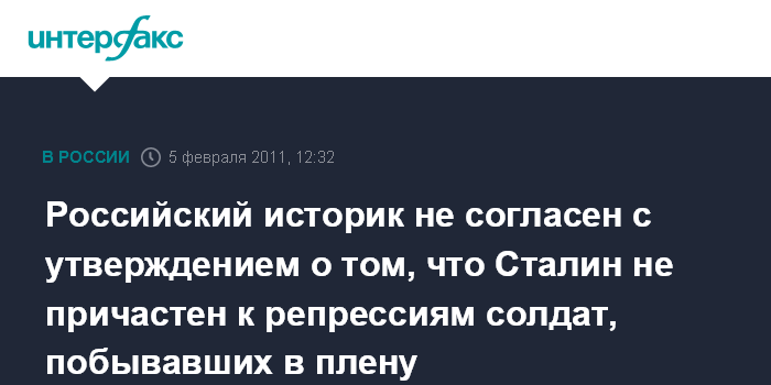 Российский историк не согласен с утверждением о том, что Сталин не причастен к репрессиям солдат, побывавших в плену