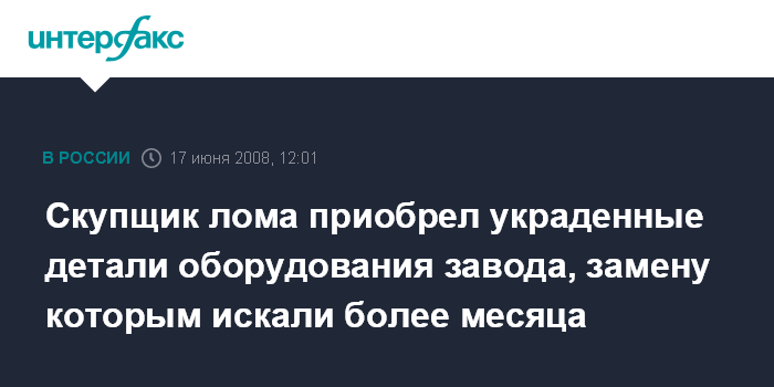 Скупщик лома приобрел украденные детали оборудования завода, замену которым искали более месяца