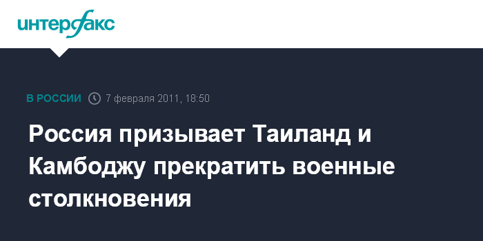 Москва. 7 февраля. INTERFAX.RU - В Москве выражают беспокойство в связи с вооруженным инцидентом на таиландско-камбоджийской границе, в результате которого имеются жертвы.