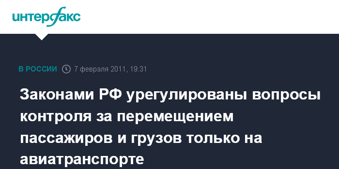 Законами РФ урегулированы вопросы контроля за перемещением пассажиров и грузов только на авиатранспорте