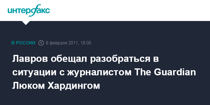 Москва. 8 февраля. INTERFAX.RU - Глава МИД России Сергей Лавров намерен разобраться в причинах отказа во въезде в РФ журналисту британской газеты The Guardian Люку Хардингу.