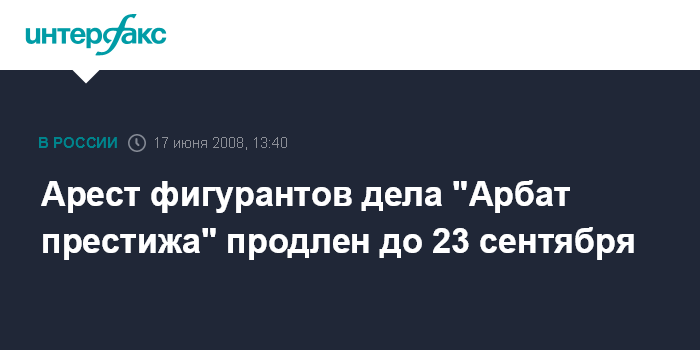 Арест фигурантов дела "Арбат престижа" продлен до 23 сентября