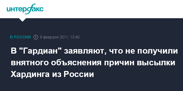 Москва. 9 февраля. INTERFAX.RU - Редакция британской газеты "Гардиан" озадачена заявлением российского МИДа о причинах высылки журналиста Люка Хардинга, говорится в заявлении редакции, поступившем в "Интерфакс" в среду.