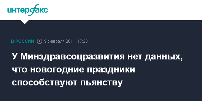 У Минздравсоцразвития нет данных, что новогодние праздники способствуют пьянству