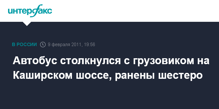 Москва. 9 февраля. INTERFAX.RU - На юге Московской области шесть человек пострадали в результате аварии с участием рейсового автобуса и грузовика, сообщил "Интерфаксу" источник в правоохранительных органах.