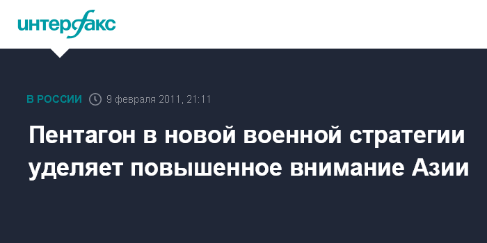 Вашингтон. 9 февраля. INTERFAX.RU - Американским военным в ближайшее десятилетие следует уделить повышенное внимание развитию событий в Азии, говорится в новой национальной военной стратегии США, опубликованной Пентагоном в Вашингтоне.