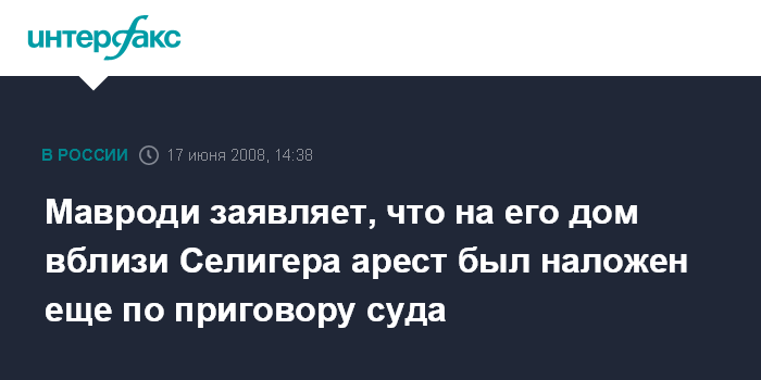Москва. 17 июня. INTERFAX.RU - Основатель "МММ" Сергей Мавроди подтвердил наличие у него дома вблизи Селигера, однако утверждает, что на это имущество был наложен арест еще по приговору суда.