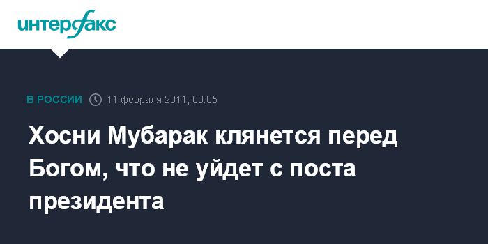 Хосни Мубарак клянется перед Богом, что не уйдет с поста президента