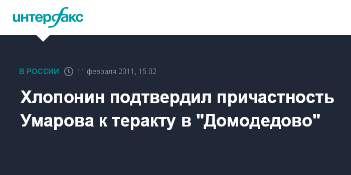 Уфа. 11 февраля. INTERFAX.RU - К теракту в московском аэропорту "Домодедово" причастен главарь северокавказского бандподполья Доку Умаров, заявил журналистам полпред президента в Северо-Кавказском округе, вице-премьер РФ Александр Хлопонин.