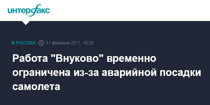 Работа "Внуково" временно ограничена из-за аварийной посадки самолета