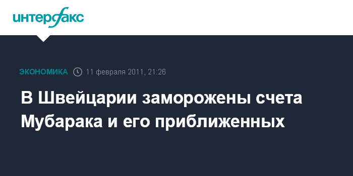 "Федеральный совет (правительство Швейцарии - ИФ) решило незамедлительно заморозить все счета в Швейцарии, возможно связанные с бывшим президентом Египта Хосни Мубараком и его окружением", - говорится в коммюнике министерства иностранных дел Швейцарии.