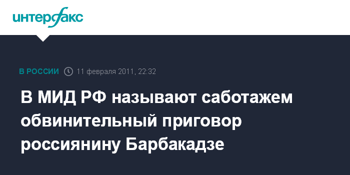 В МИД РФ называют саботажем обвинительный приговор россиянину Барбакадзе
