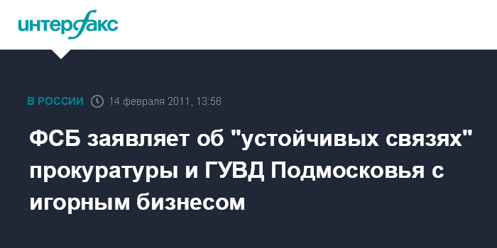 ФСБ заявляет об "устойчивых связях" прокуратуры и ГУВД Подмосковья с игорным бизнесом