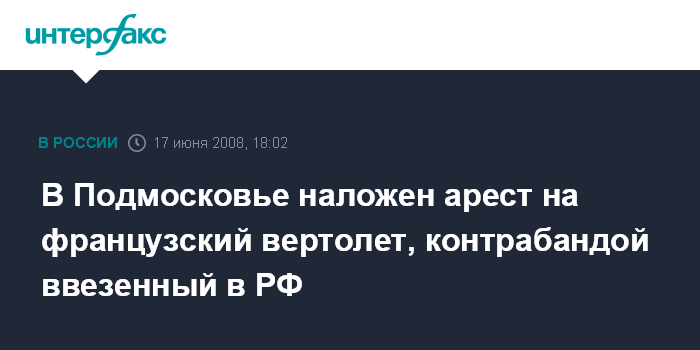 В Подмосковье наложен арест на французский вертолет, контрабандой ввезенный в РФ