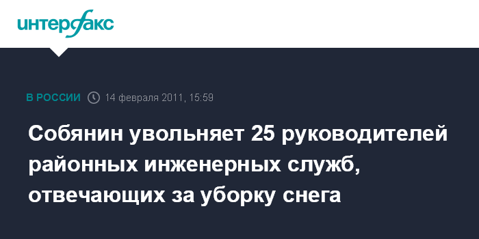 Собянин увольняет 25 руководителей районных инженерных служб, отвечающих за уборку снега