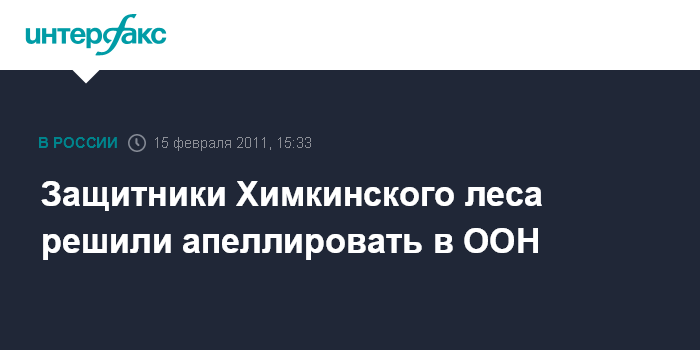 Москва. 15 февраля. INTERFAX.RU - Активисты движения "В защиту Химкинского леса" призвали ООН помочь остановить строительство через лес трассы Москва-Петербург, сообщил участник движения Ярослав Никитенко.