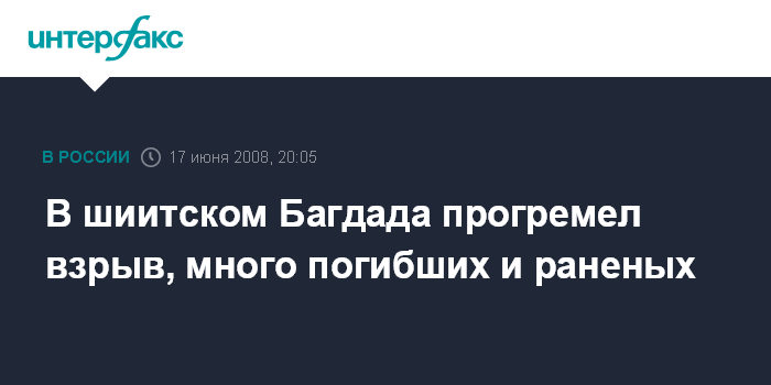 Взрыв прогремел на автобусной остановке в шиитском квартале иракской столицы. По первоначальным данным, смертник, находившийся за рулем, выбрал целью именно людей, стоявших на остановке.
