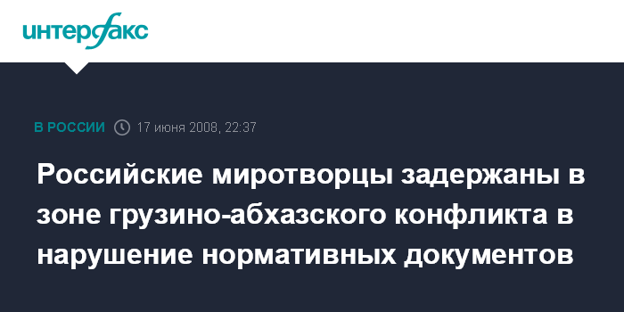 Москва. 17 июня. ИНТЕРФАКС - В Министерстве обороны РФ подтвердили факт задержания российских миротворцев в зоне грузино-абхазского конфликта.