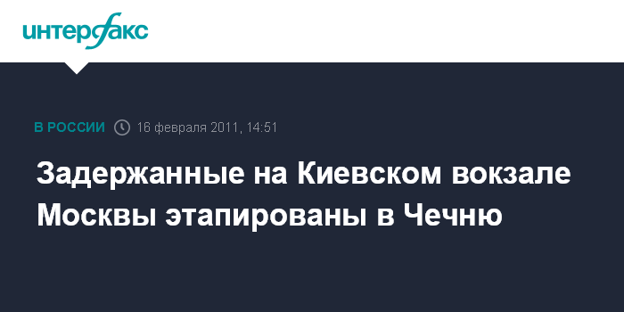 Задержанные на Киевском вокзале Москвы этапированы в Чечню