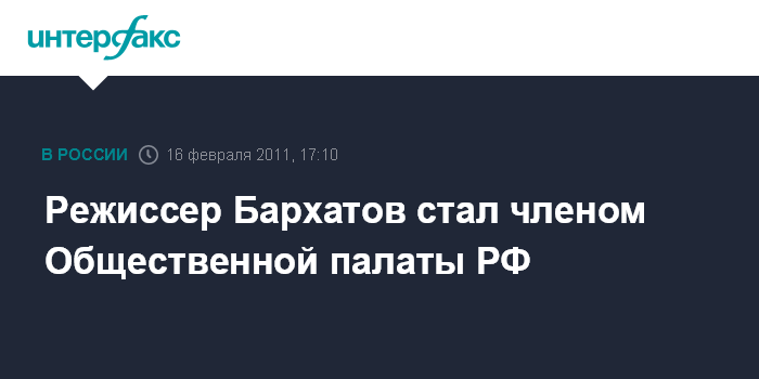 "Президент своим указом утвердил режиссера Василия Бархатова членом Общественной палаты РФ", - говорится в сообщении, размещенном на официальном сайте Кремля.