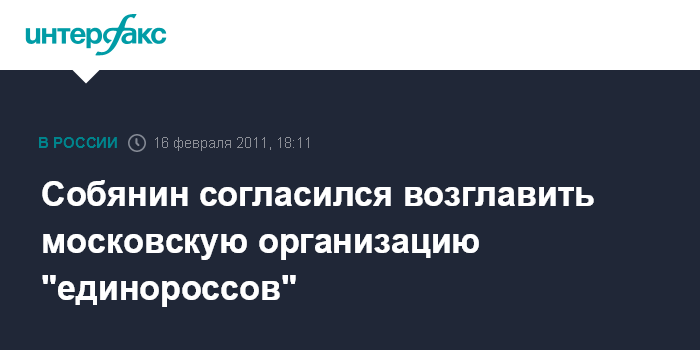 Москва. 16 февраля. INTERFAX.RU - Мэр Москвы Сергей Собянин дал согласие возглавить московское отделение партии "Единая Россия".