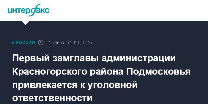 Первый замглавы администрации Красногорского района Подмосковья привлекается к уголовной ответственности