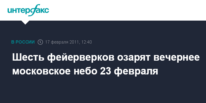 Шесть фейерверков озарят вечернее московское небо 23 февраля