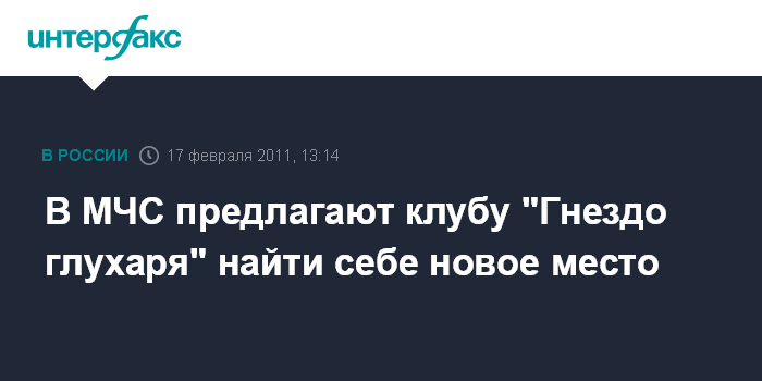 В МЧС предлагают клубу "Гнездо глухаря" найти себе новое место