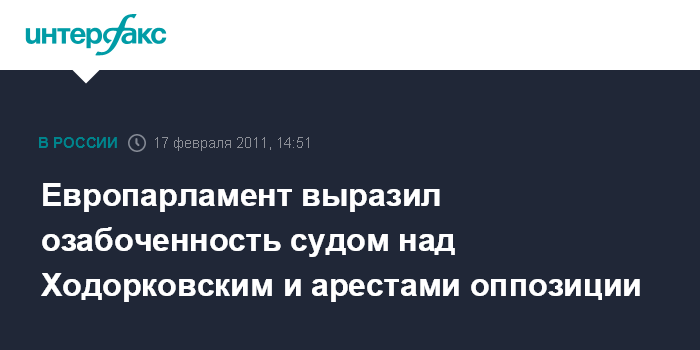 Европарламент выразил озабоченность приговором по второму делу Михаила Ходорковского и Платона Лебедева. Он призвал российские власти сделать все от них зависящее для учреждения в стране судебной системы, соответствующей обещаниям президента РФ о справедливом и транспарентном правосудии.
