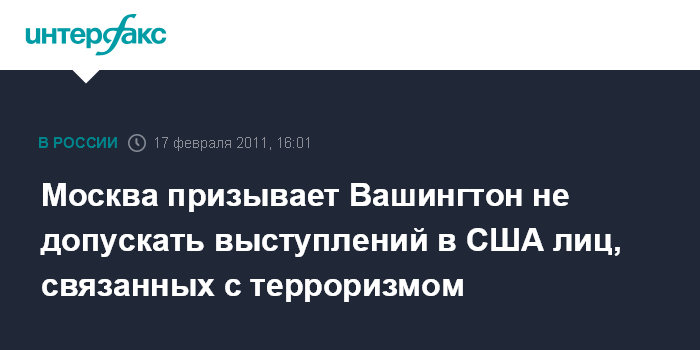 Москва призывает Вашингтон не допускать выступлений в США лиц, связанных с терроризмом