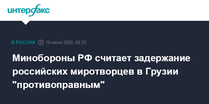 Москва. 18 июня. INTERFAX.RU - Задержание российских миротворцев грузинскими полицейскими в зоне безопасности нарушает нормативные акты и является противоправным, заявили "Интерфаксу-АВН" в главкомате Сухопутных войск РФ.
