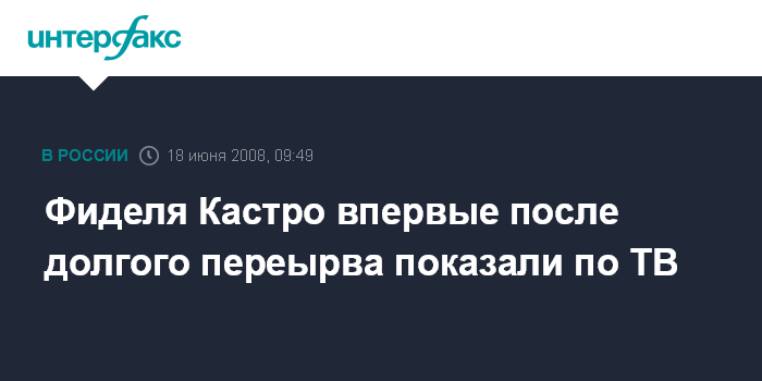 Гавана/Каракас. 18 июня. INTERFAX.RU - Кубинское телевидение вчера впервые за последние пять месяцев показало бывшего лидера страны - Фиделя Кастро.