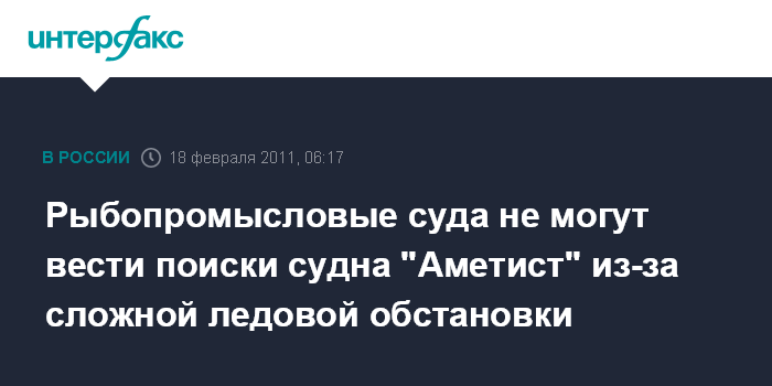 Рыбопромысловые суда не могут вести поиски судна "Аметист" из-за сложной ледовой обстановки