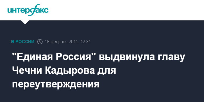 Москва. 18 февраля. INTERFAX.RU - Действующие руководители Чеченской республики и Ульяновской области названы в числе кандидатур, которые "Единая Россия" намерена предложить президенту РФ для утверждения на посту глав этих регионов.