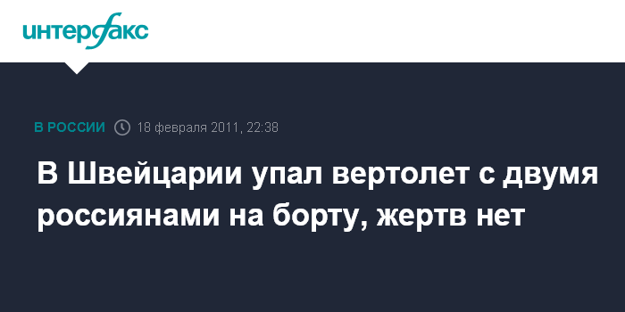 России пострадали в результате крушения вертолета в швейцарских горах,