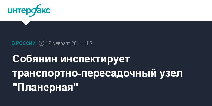 Москва. 19 февраля. INTERFAX.RU - Мэр Москвы Сергей Собянин в субботу приехал на транспортно-пересадочный узел "Планерная" на северо-западе столицы, передает корреспондент "Интерфакса". ТПУ "Планерная" работает в настоящее время в тестовом режиме, его общая площадь 51 тыс. кв. метров, рядом располагается паркинг на 600 машино-мест общей площадью 21 тыс. кв. метров. Пропускная способность ТПУ 15 тыс. пассажиров в час.