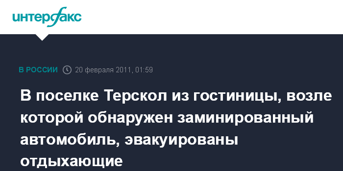 Ростов-на-Дону. 20 февраля. ИНТЕРФАКС-ЮГ - Порядка 50 отдыхающих, в основном туристов и горнолыжников, эвакуированы из гостиницы в поселке Терсков, рядом с которой найден, предположительно, заминированный автомобиль.