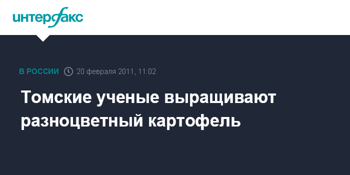 Томск. 20 февраля. INTERFAX.RU - Томские ученые-сортоиспытатели картофеля второй год экспериментируют с посадками этой культуры в городе Колпашево (Томская область), высаживая сорта ярко-оранжевого, синего, фиолетового и красного цвета клубней. "Выращивать картофель всех цветов радуги будут не ради красоты, а из-за его полезных свойств. Дело в том, что цветной картофель богат антиоксидантами, имеет среднее содержание крахмала и повышенное - инсулина", - сообщает сайт аграрного центра региона.