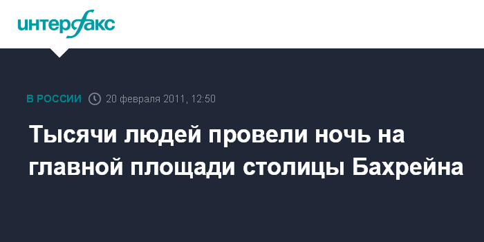 Лондон. 20 февраля. INTERFAX.RU - Военные, покинувшие Жемчужную площадь Манамы по приказу кронпринца Шейх аль Халифа, открыли площадь для демонстрантов. Как сообщает британская телерадиовещательная корпорация BBC, тысячи участников антиправительственных демонстраций провели ночь на главной площади столицы страны после того, как оттуда были выведены силы безопасности.