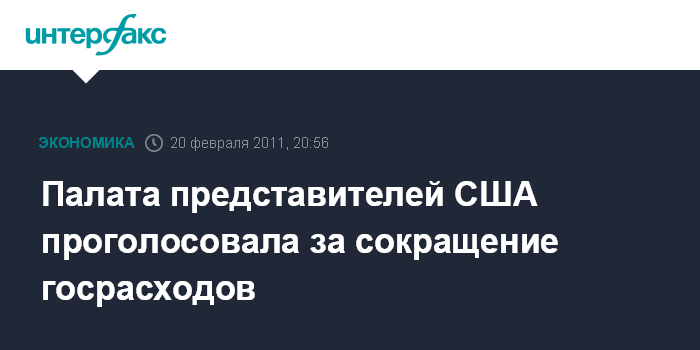 Вашингтон. 21 февраля. ИНТЕРФАКС - Палата представителей Конгресса США, в которой большинство составляют республиканцы, проголосовала в субботу за сокращение расходов бюджета на текущий финансовый год на $61 млрд, вступив в противостояние с администрацией Барка Обамы.