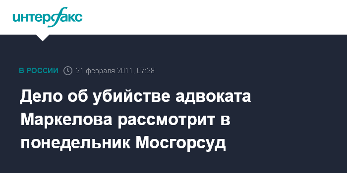 Дело об убийстве адвоката Маркелова рассмотрит в понедельник Мосгорсуд