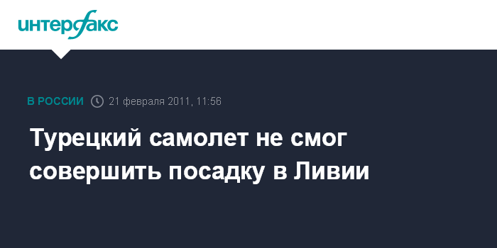 Стамбул. 21 февраля. INTERFAX.RU - Пассажирский самолет, отправленный властями Турции в ливийский город Бенгази, не смог совершить посадку, сообщает в понедельник турецкое телевидение.