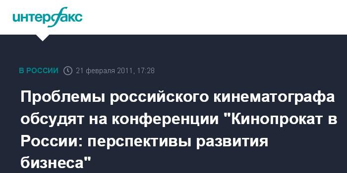 Москва. 21 февраля. INTERFAX.RU - В эту пятницу в Москве состоится конференция лидеров российской киноиндустрии с целью обсуждения вопросов будущего проката отечественного кино. Конференция "Кинопрокат в России: перспективы развития бизнеса" позволит увидеть реальную картину работы правительственных программ поддержки отечественной кинематографии. Изменения в формате господдержки кинопроизводства оставили за бортом государственного финансирования многие продюсерские центры. Конфликты и противоречия отражаются на всей индустрии и мешают новым проектам, где государство выступает как инвестор.