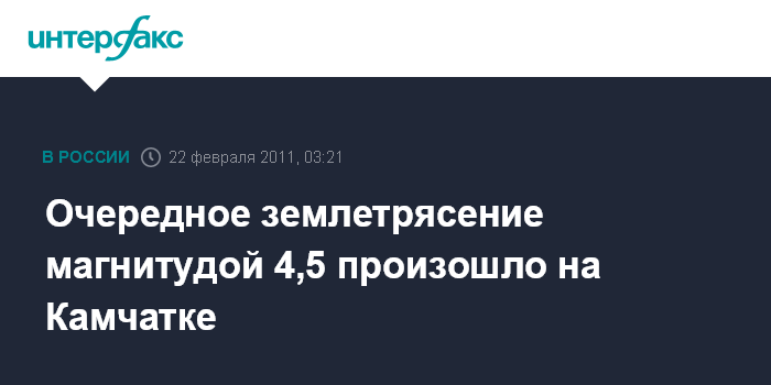 Петропавловск-Камчатский. 22 февраля. ИНТЕРФАКС-ДАЛЬНИЙ ВОСТОК - Шестое за сутки землетрясение произошло на востоке Камчатского края, и, как и прежние, оно не принесло разрушений и не привело к жертвам.
